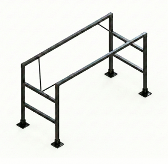 Рельса (из двутавра) длиной 2,8 м. Отверстия под "стопорный палец" через каждые 35 см.