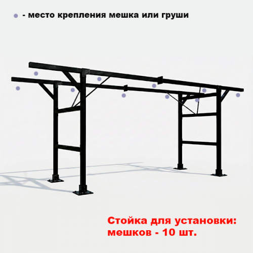 Стойка для боксерских мешков профессиональная №8 (на 10 мешков) (Ш:Д:В): 2,0:8,0:2,8 м.